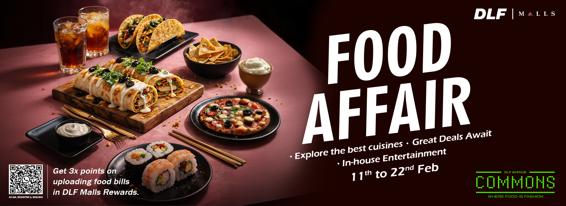 COMMONS is Delhi’s first dedicated F&B district hosting the most popular restaurants, bars and cafes, spread over three floors. This curation thrives to give audiences a truly tasteful and fulfilling dining experience, making food the new fashion. It features a mix of cuisines from the world over, presented in unique dining formats. It is a perfect hot spot for weekend brunches, business breakfasts, casual lunches, dressed-up dinners and anything in between.